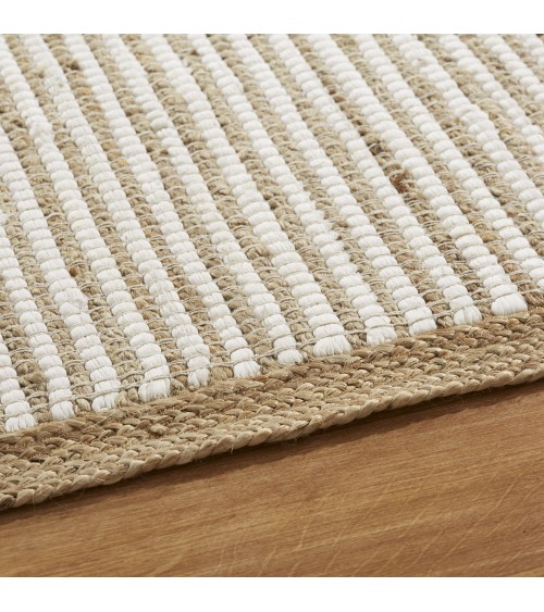 Tapis en coton recyclé blanc et jute beige tissés main 140x200