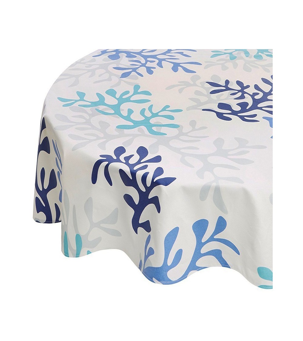 Matière : Coton enduit - Finition : Ourlée - La collection Corail prend des airs de tableau de Matisse. On y voit des formes abstraites ou bien des coraux pour un esprit bord de mer moderne et original. Ici, en rouge, le motif Corail est également décliné en 2 autres coloris. Nappe de table imperméable et anti-tache : La Nappe enduite ronde ou ovale Corail bleu Fleur de Soleil est réalisée en coton enduit de haute qualité et résiste aux taches de toute la famille (vin, café, chocolat, sauce tomate, huile...) Fabrication 100% française : Le tissu Fleur de Soleil est tissé, blanchi, imprimé et enduit dans les Vosges, à Gérardmer. Tissu écologique : Impression du tissu certifiée Oeko-Tex classe I (les bébés peuvent le mettre à la bouche), enduction sans produits toxiques, sans PVC, sans phtalates Entreprise socialement responsable : les commandes sont réalisées et expédiées par un ESAT (Etablissement Spécialisé d'Aide par le travail) permettant à des handicapés de travailler en milieu ''protégé''. Nappe facile d'entretien : La Nappe enduite ronde ou ovale Corail bleu s'entretient d'un coup d'éponge humide après chaque repas. Vinaigre d'alcool ou eau de Javel pour bien nettoyer. Lavage en machine possible occasionnellement à 30 C sans produit adoucissant ni essorage. Repassage obligatoire sur l'envers en position coton ou sur l'endroit avec une patte-mouille.