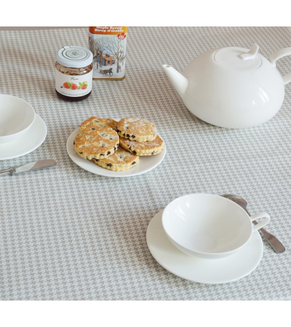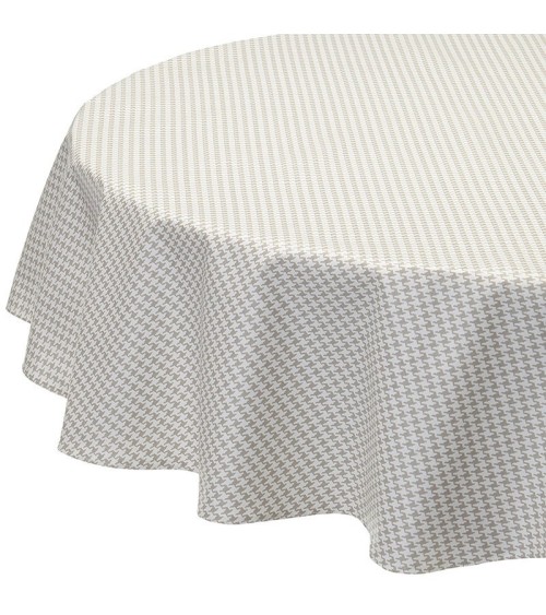 Matière : Coton enduit - Finition : Ourlée - Nappe de table imperméable et anti-tache : La Nappe enduite ronde ou ovale Pied de Poule gris Fleur de Soleil est réalisée en coton enduit de haute qualité et résiste aux taches de toute la famille (vin, café, chocolat, sauce tomate, huile...) Fabrication 100% française : Le tissu Fleur de Soleil est tissé, blanchi, imprimé et enduit dans les Vosges, à Gérardmer. Tissu écologique : Impression du tissu certifiée Oeko-Tex classe I (les bébés peuvent le mettre à la bouche), enduction sans produits toxiques, sans PVC, sans phtalates Entreprise socialement responsable : les commandes sont réalisées et expédiées par un ESAT (Etablissement Spécialisé d'Aide par le travail) permettant à des handicapés de travailler en milieu ''protégé''. Nappe facile d'entretien : La Nappe enduite ronde ou ovale Pied de Poule gris s'entretient d'un coup d'éponge humide après chaque repas. Vinaigre d'alcool ou eau de Javel pour bien nettoyer. Lavage en machine possible occasionnellement à 30 C sans produit adoucissant ni essorage. Repassage obligatoire sur l'envers en position coton ou sur l'endroit avec une patte-mouille.
