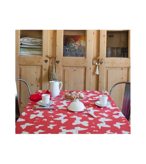 Matière : Coton enduit - Finition : Non ourlée (coupe franche) - Nappe de table imperméable et anti-tache : La Nappe enduite Papillon corail Fleur de Soleil est réalisée en coton enduit de haute qualité et résiste aux taches de toute la famille (vin, café, chocolat, sauce tomate, huile...) Fabrication 100% française : Le tissu Fleur de Soleil est tissé, blanchi, imprimé et enduit dans les Vosges, à Gérardmer. Tissu écologique : Impression du tissu certifiée Oeko-Tex classe I (les bébés peuvent le mettre à la bouche), enduction sans produits toxiques, sans PVC, sans phtalates Entreprise socialement responsable : les commandes sont réalisées et expédiées par un ESAT (Etablissement Spécialisé d'Aide par le travail) permettant à des handicapés de travailler en milieu ''protégé''. Nappe facile d'entretien : La Nappe enduite Papillon corail s'entretient d'un coup d'éponge humide après chaque repas. Vinaigre d'alcool ou eau de Javel pour bien nettoyer. Lavage en machine possible occasionnellement à 30 C sans produit adoucissant ni essorage. Repassage obligatoire sur l'envers en position coton ou sur l'endroit avec une patte-mouille.