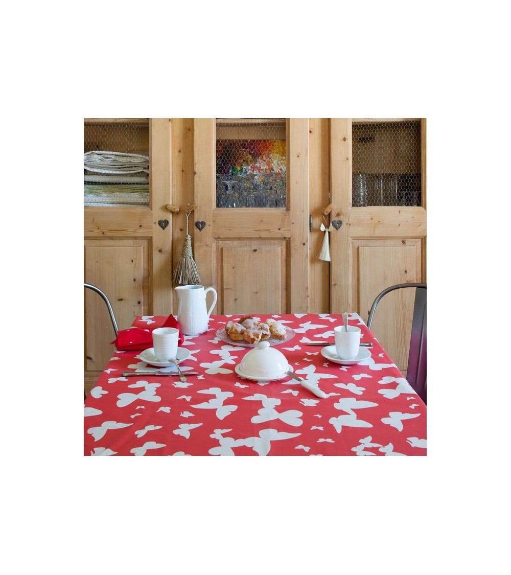 Matière : Coton enduit - Finition : Ourlée - Nappe de table imperméable et anti-tache : La Nappe enduite ronde ou ovale Papillon corail Fleur de Soleil est réalisée en coton enduit de haute qualité et résiste aux taches de toute la famille (vin, café, chocolat, sauce tomate, huile...) Fabrication 100% française : Le tissu Fleur de Soleil est tissé, blanchi, imprimé et enduit dans les Vosges, à Gérardmer. Tissu écologique : Impression du tissu certifiée Oeko-Tex classe I (les bébés peuvent le mettre à la bouche), enduction sans produits toxiques, sans PVC, sans phtalates Entreprise socialement responsable : les commandes sont réalisées et expédiées par un ESAT (Etablissement Spécialisé d'Aide par le travail) permettant à des handicapés de travailler en milieu ''protégé''. Nappe facile d'entretien : La Nappe enduite ronde ou ovale Papillon corail s'entretient d'un coup d'éponge humide après chaque repas. Vinaigre d'alcool ou eau de Javel pour bien nettoyer. Lavage en machine possible occasionnellement à 30 C sans produit adoucissant ni essorage. Repassage obligatoire sur l'envers en position coton ou sur l'endroit avec une patte-mouille.