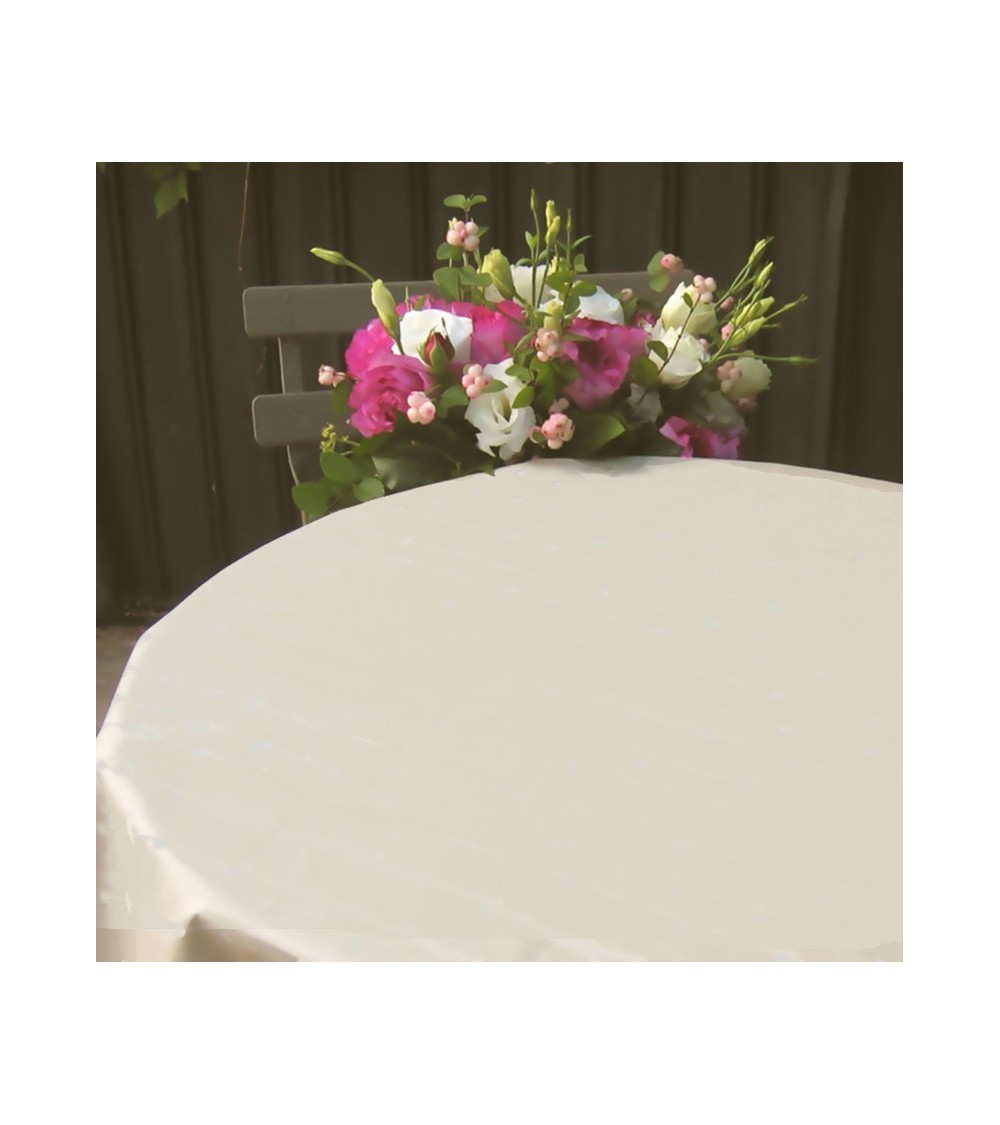 Matière : Coton enduit - Finition : Ourlée - Nappe de table imperméable et anti-tache : La Nappe enduite ronde ou ovale Unie sable Fleur de Soleil est réalisée en coton enduit de haute qualité et résiste aux taches de toute la famille (vin, café, chocolat, sauce tomate, huile...) Fabrication 100% française : Le tissu Fleur de Soleil est tissé, blanchi, imprimé et enduit dans les Vosges, à Gérardmer. Tissu écologique : Impression du tissu certifiée Oeko-Tex classe I (les bébés peuvent le mettre à la bouche), enduction sans produits toxiques, sans PVC, sans phtalates Entreprise socialement responsable : les commandes sont réalisées et expédiées par un ESAT (Etablissement Spécialisé d'Aide par le travail) permettant à des handicapés de travailler en milieu ''protégé''. Nappe facile d'entretien : La Nappe enduite ronde ou ovale Unie sable s'entretient d'un coup d'éponge humide après chaque repas. Vinaigre d'alcool ou eau de Javel pour bien nettoyer. Lavage en machine possible occasionnellement à 30 C sans produit adoucissant ni essorage. Repassage obligatoire sur l'envers en position coton ou sur l'endroit avec une patte-mouille. Une nappe ronde est souvent plus jolie et élégante sur une table ronde ;)