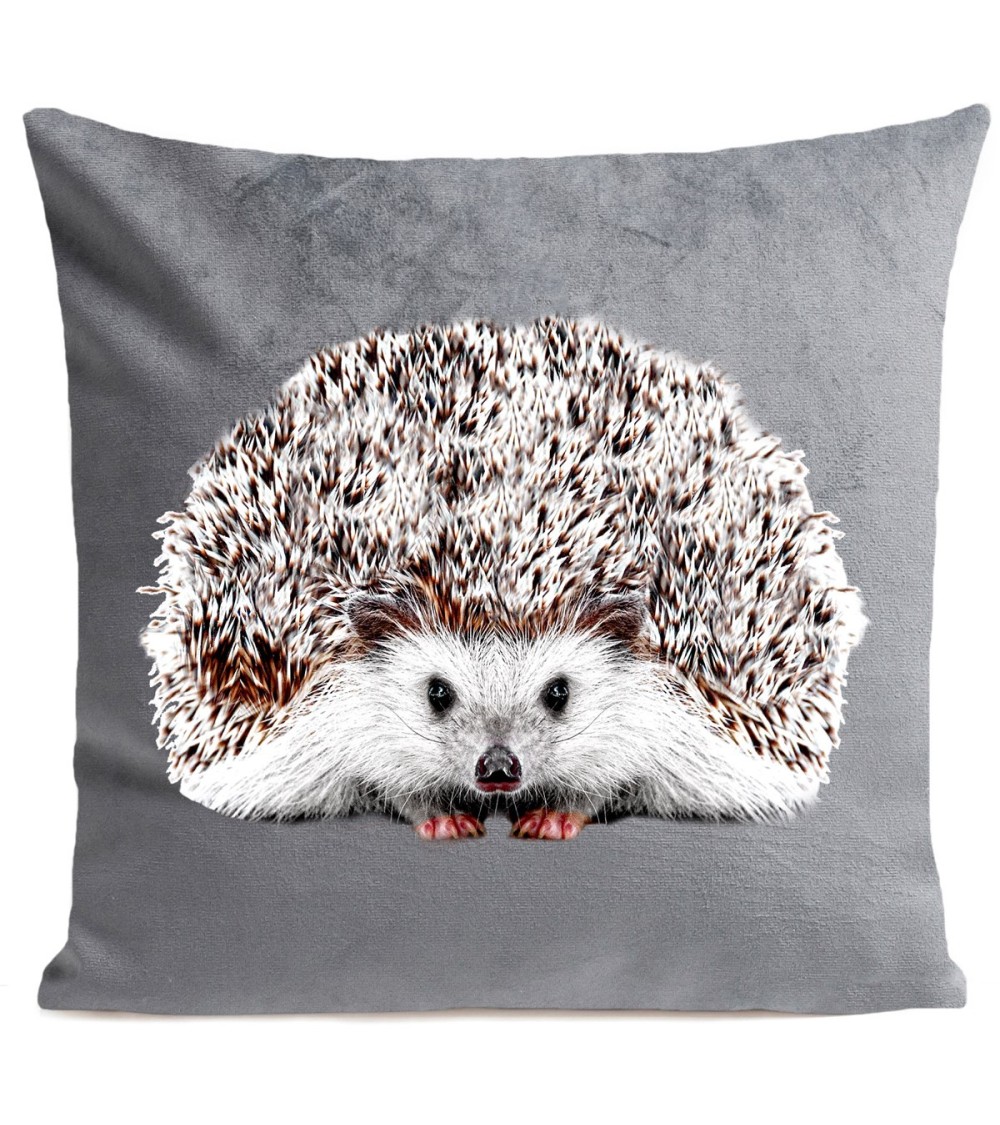 Coussin velours carré imprimé animaux gris clair 60x60