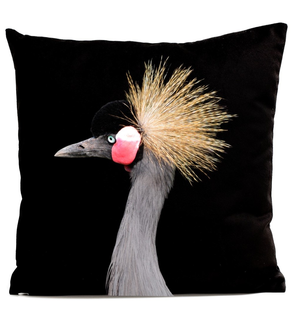 Coussin Oiseau Grue Couronnée Velours 40x40cm