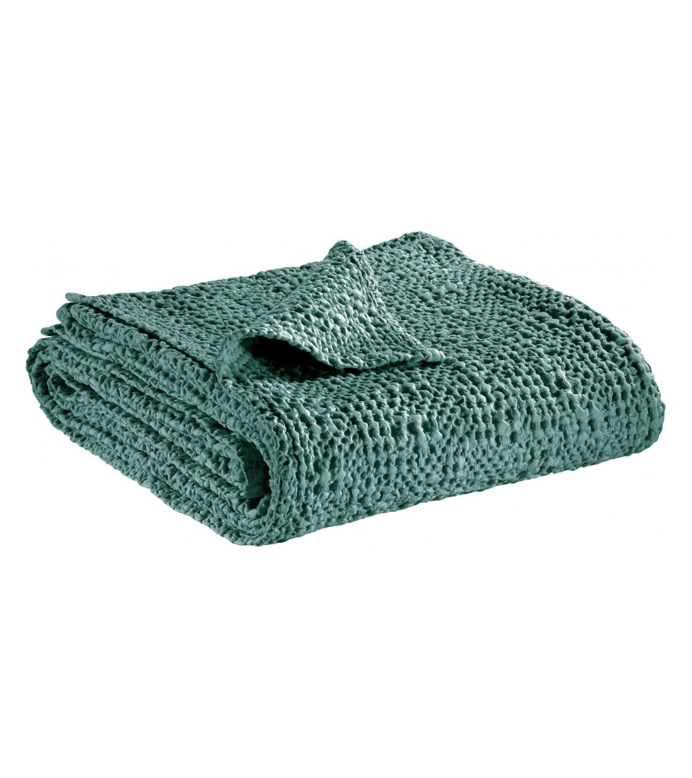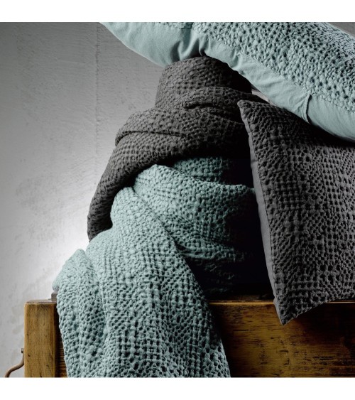 Jeté stonewashed en coton vert de gris 260 x 260