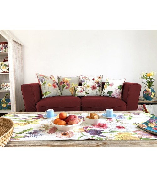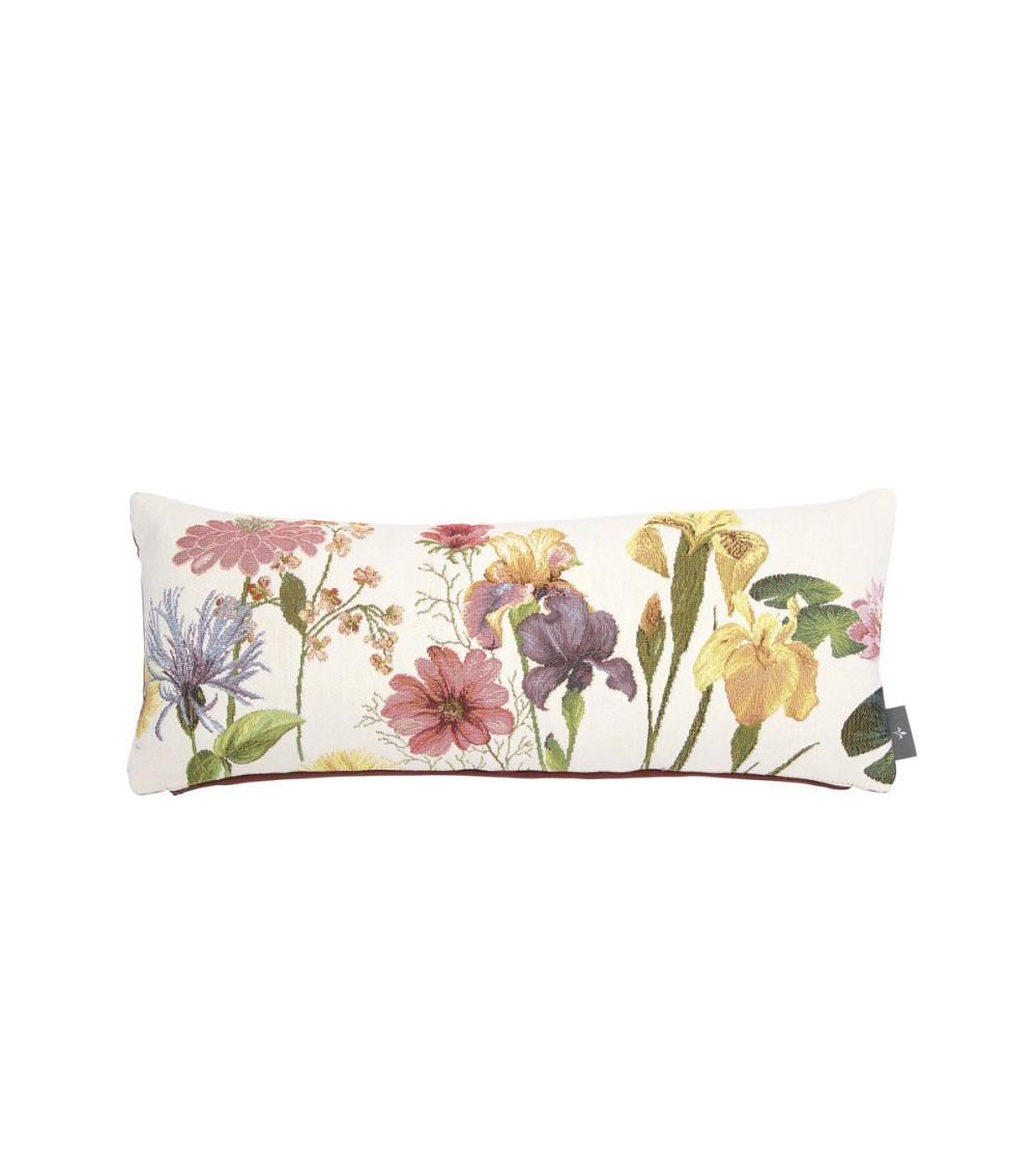Coussin Giverny. Ce coussin embellira et parfumera votre intérieur. Composition : 72% Coton - 25% Viscose - 3% Polyester. Intérieur : Inclus. Style : Coussin tapisserie tissé en France. Entretien : Lavage à sec. Dimensions : 25 x 90 cm. Ouverture : Fermeture éclaire. Le coussin est fourni avec son intérieur (garnissage inclus).