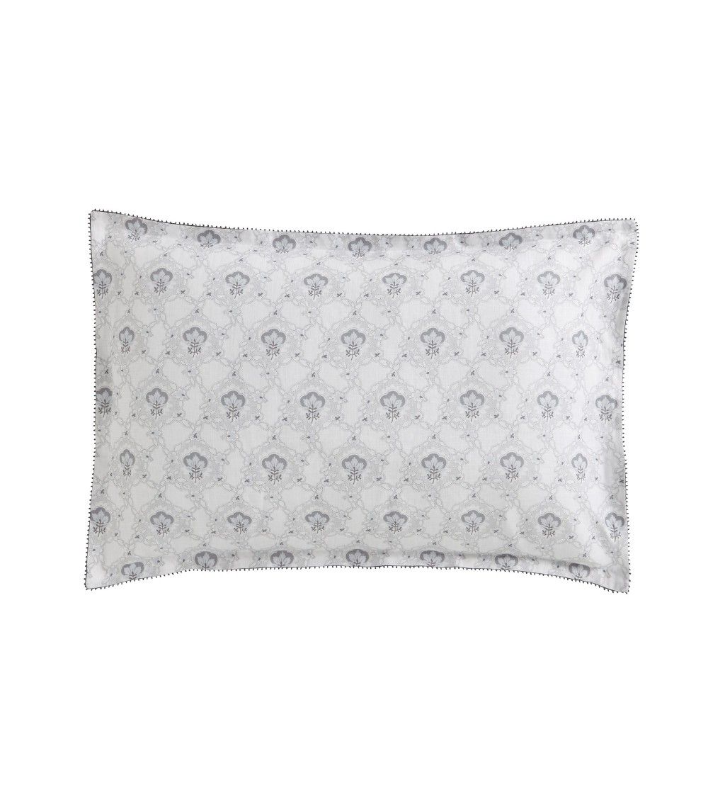 Le modèle Lourmarin est un linge de lit en pur lin européen, sur lequel est imprimé un motif ''Dentelle et bleuets''. Le coordonné est orné d'un micro-motif étoilé.La taie d'oreiller se compose d'une face imprimée du motif pricnipal ''Dentelle et bleuets'', et d'une face imprimée du micro-motif étoilé. Cette taie à double rabat est encadrée d'un volant de 2 centimètres et d'un picot en passepoil.