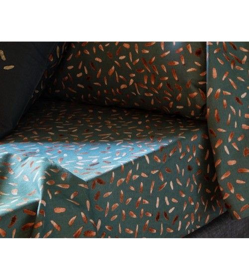 Craquez pour MAGIC FOREST - Drap-housse en coton vert 140x190. Ce drap-housse motif pétales révèle une envolée végétale qui se révèle à merveille sur un fond de couleur intense. Un drap-housse imprimé d'un mini-motif pétales coloris doré sur fond kaki, muni de bonnets dune profondeur de 28 cm. La technique de l'impression réactive garantit une excellente tenue des couleurs car l'encre pénètre au cur de la fibre et supporte sans problème les lavages à 60°. Ce drap-housse fantaisie est conçu dans une toile de pur coton au tissage de 57 fils/cm².