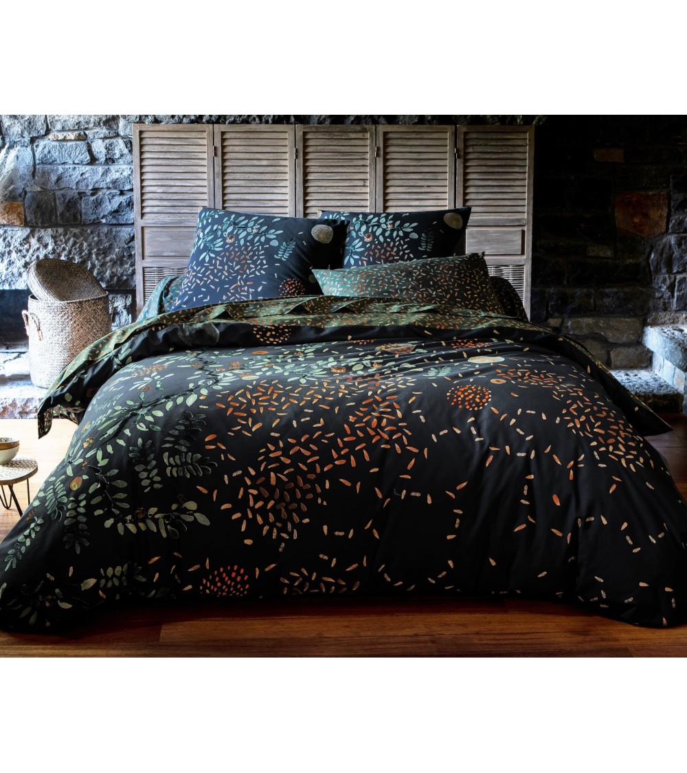 Mettez de la magie dans la déco de lit avec MAGIC FOREST - Housse de couette en coton vert 140x200 réversible motif pétales ! La technique de l'impression réactive garantit une excellente tenue des couleurs et sadapte aux lavages à 60°. Cette housse de couette fantaisie à rabat de 40 cm est conçue dans une toile de pur coton au tissage de 57 fils/cm². Côté réversibilité, le recto de la housse de couette se pare dun motif placé pétales et fleurs stylisées tandis que le verso affiche un motif pétales coloris doré sur fond vert.
