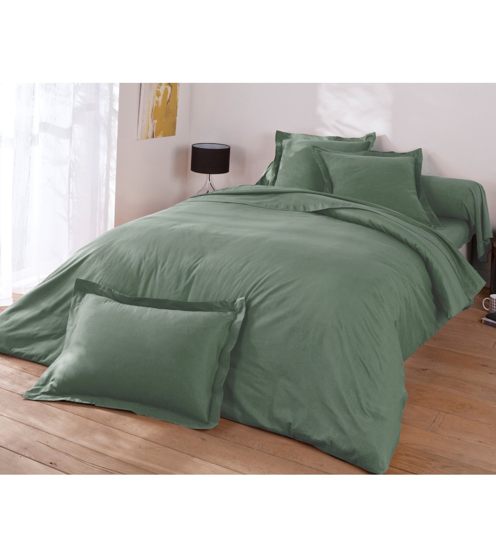 Housse de couette 140x200 en percale de coton vert eucalyptus