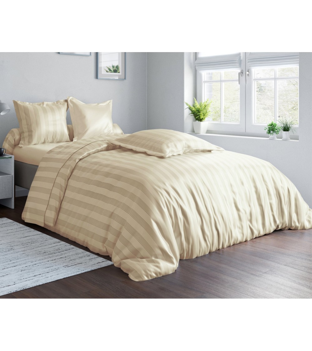 Savourez la douceur de votre linge de lit avec SATIN - Housse de couette en coton beige 240x220 en satin de coton très élégant et décliné dans une palette de coloris actuels. Cette housse de couette à rabat de 40 cm dispose d'une face rayée et dune face unie pour changer de décor au gré de vos envies. Le support en satin de coton, au tissage serré de 120 fils/cm², utilise des fils très fins pour une douceur exceptionnelle. Cette housse de couette en satin de coton est lavable à 60°pour le blanc et à 40° pour les couleurs.
