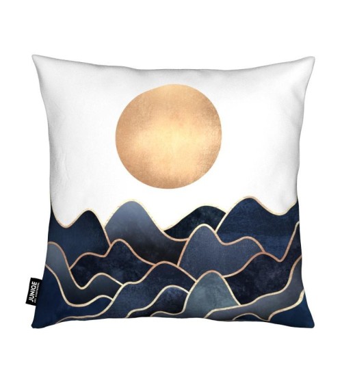 Housse de coussin imprimée en continu (all-over) avec son coussin de garnissage. Matière hypoallergénique. Peut être produit en trois tailles différentes. Porte une fermeture éclair.