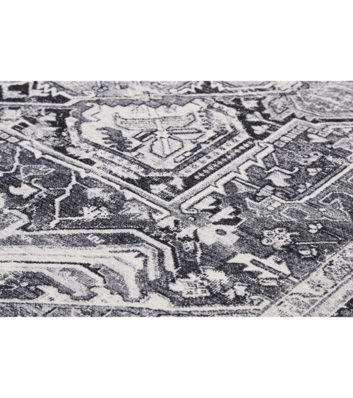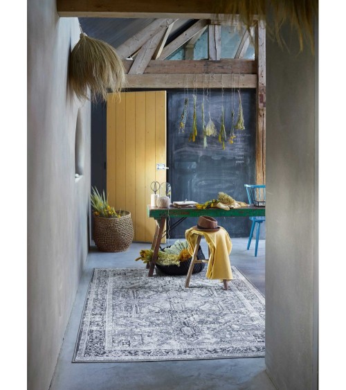 Ce magnifique tapis tissé en chenille - coton évoque apporte du style à votre maison. Motif rétro et style vintage, nuances de gris confèrent à ce tapis une intemporalité. Résistant, facile à nettoyer et certifié Ökotex Standard 100. Surpiqure au bord. L'utilisation d'une sous-couche antidérapante est recommandée.