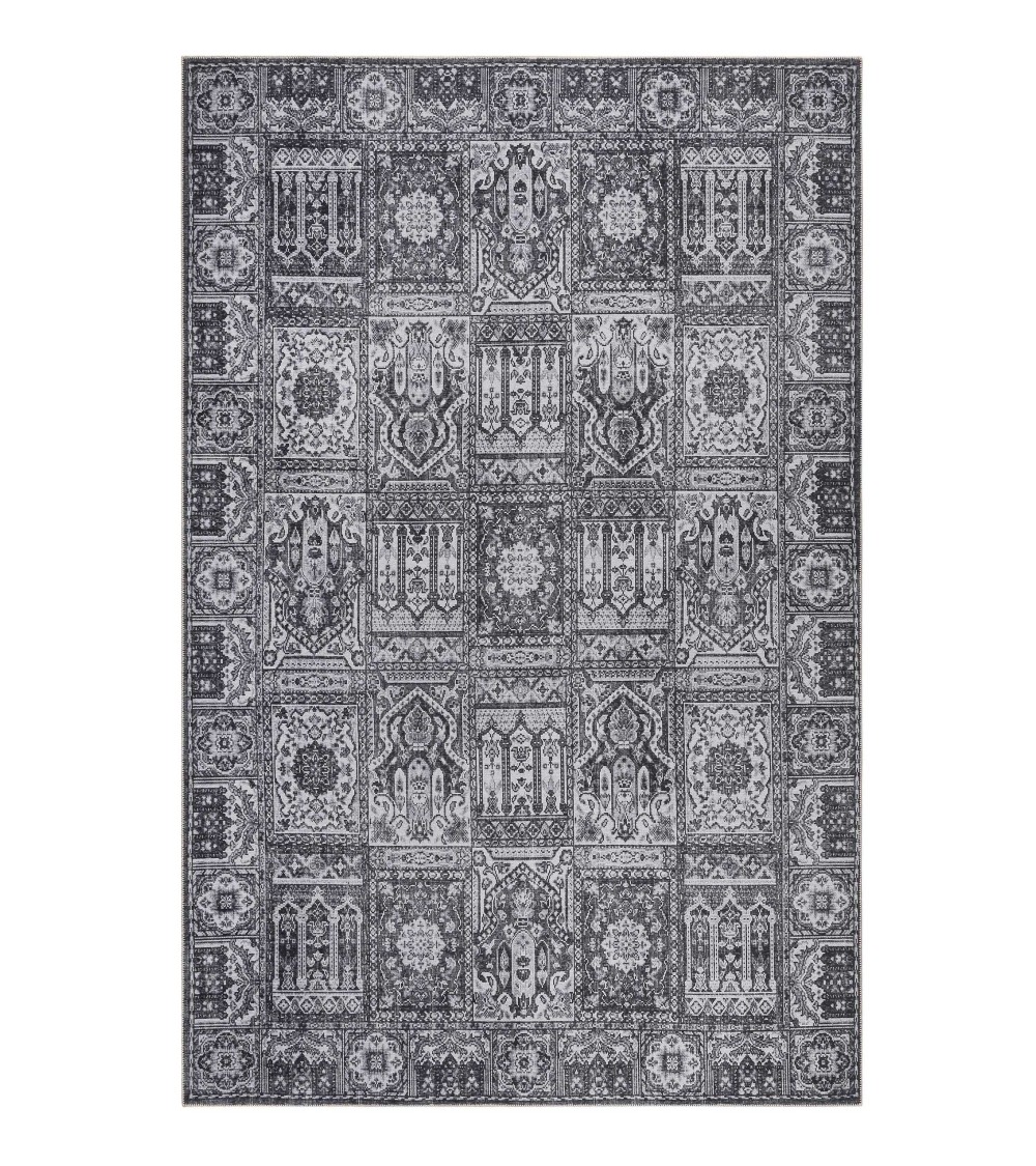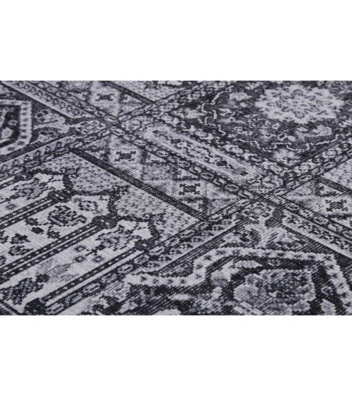Ce magnifique tapis tissé en chenille - coton évoque apporte du style à votre maison. Motif rétro et style vintage, nuances de gris confèrent à ce tapis une intemporalité. Résistant, facile à nettoyer et certifié Ökotex Standard 100. Surpiqure au bord. L'utilisation d'une sous-couche antidérapante est recommandée.