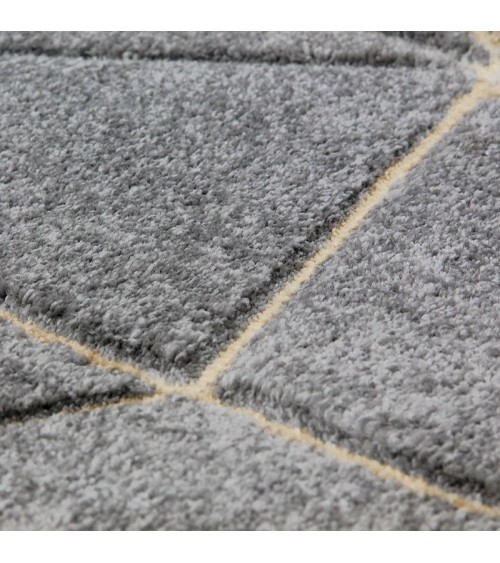 Un grand tapis gris aux lignes écrues/beiges en relief créant un décor en losange très tendance, qui saura donner du caractère et de l'originalité à votre pièce. Il sera d'autant plus agréable avec son toucher confortable et doux.