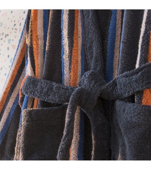 Vous allez adorer la douceur et le confort du peignoir MILOS à rayures verticales, composé en coton, avec un recto en velours et un verso en éponge 450g/m²Très résistant, il restera intact même après un passage à la machine à laver.5 tailles sont disponibles : XS, S, M, L et XL.Très pratique, il est agrémenté de deux poches, d'une accroche patère et d'une ceinture sous passants, ainsi que d'une finition COL Kimono.Complétez ce peignoir avec la serviette de toilette, le drap de douche et le drap de plage de la même collection.Conseils d'entretien :Le produit est lavable à 60° et séchable en machine à température modérée - suivez les instructions sur la vignette d'entretien