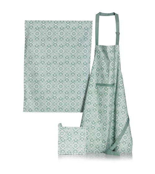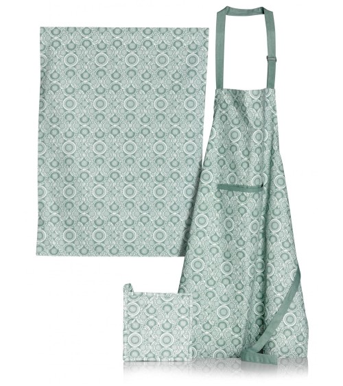 Découvrez Eline, une gamme de linge de cuisine 100% coton. Cette gamme au motif tendance et couleurs originales saura apporter une touche de modernité et d'originalité à votre cuisine. Ce tablier à boucle réglable sublimera votre cuisine tout en vous protégeant efficacement grâce à son enduit imperméable.