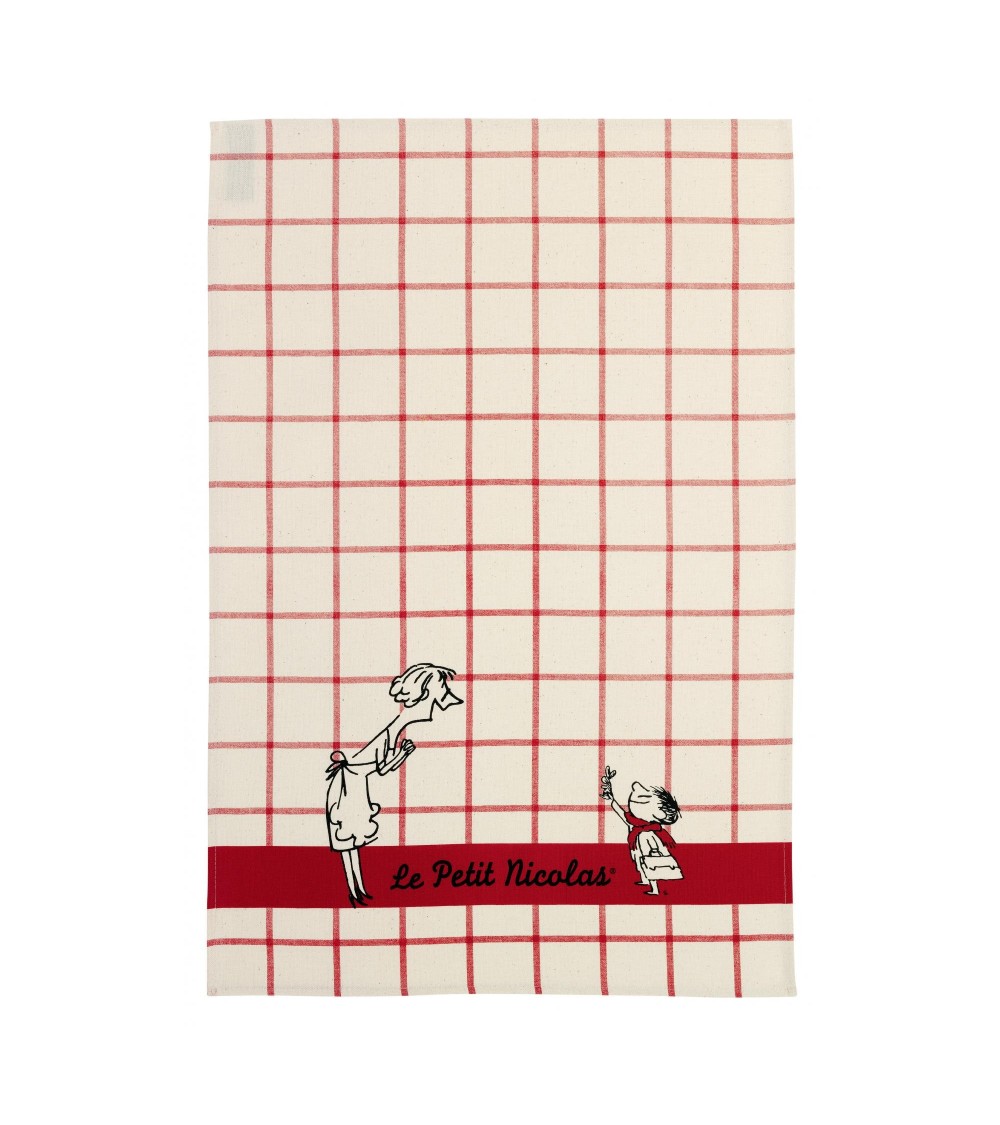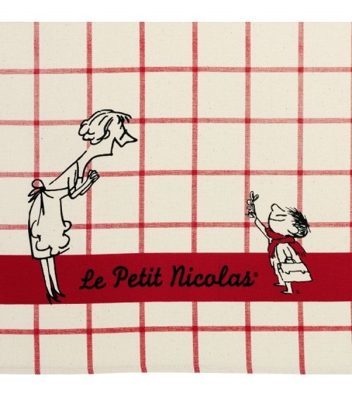 Torchon le petit nicolas carreaux en coton écru 48 x 72