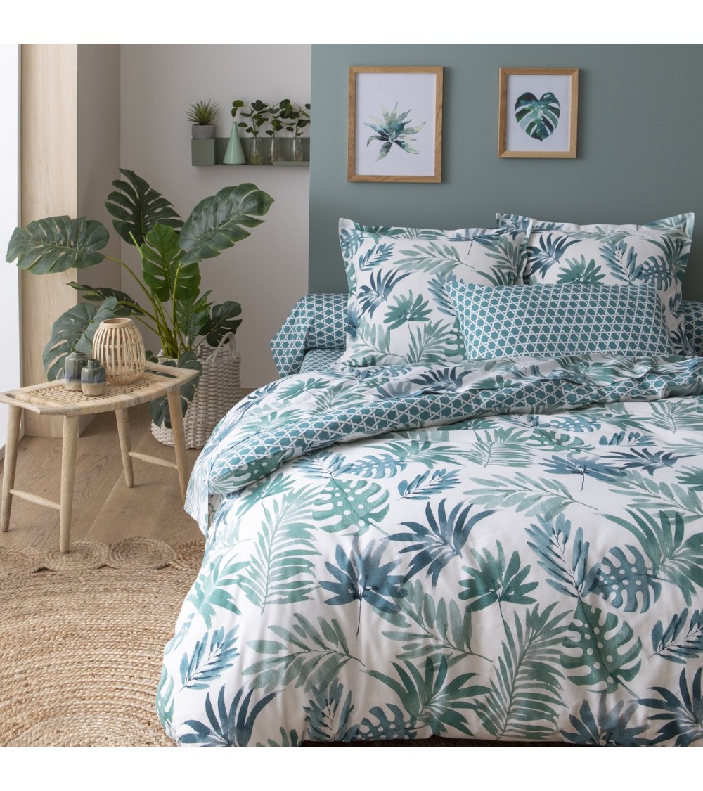 Le modèle Angele, vous fera voyager dans une nature sauvage et chic. Un colori imprimé feuillage pour des nuits douces et calmes