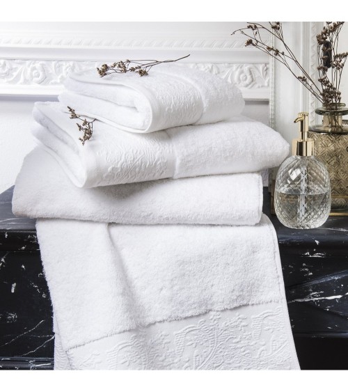 Cette serviette blanche, élégante et raffinée sera parfaite pour vous sécher rapidement.Confortable et absorbante, elle est composée en éponge 100% coton peigné de densité 550 gr/m².De dimension 40x60 cm, elle n'occupera que peu de place dans votre salle de bain.Associez cette serviette invité avec les autres éléments de la collection HERITAGE pour un linge de bain harmonieux : la serviette de toilette et le drap de douche.Conseils d'entretien :Le produit est lavable à 60° et séchable en machine à température modérée - suivez les instructions sur la vignette d'entretien