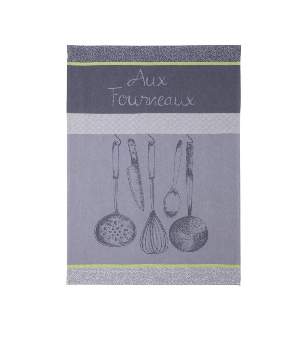 Ce torchon 100% coton, reprend les ustensiles incontournables de la cuisine, dans des tons de gris. Equipez-vous pour un repas parfait !