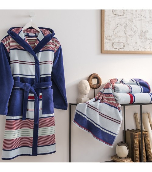 On aime les rayures horizontales dans des tonalités de bleu et de rouge du peignoir PLAISANCE, pour une sortie de bain confortable et stylée.Ce peignoir 100% coton est composé d'un recto en velours et d'un verso en éponge. La densité de 450 gr/m² lui confère une grande douceur et un excellent pouvoir d'absorption.Le peignoir PLAISANCE est disponible en 5 tailles : XS, S, M, L et XL.Il dispose d'une capuche, de deux poches, d'une accroche patère et d'une ceinture sous passants.Complétez ce peignoir avec l'ensemble de la collection PLAISANCE pour coordonner votre linge de bain.Conseils d'entretien :Le produit est lavable à 60° et séchable en machine à température modérée - suivez les instructions sur la vignette d'entretien