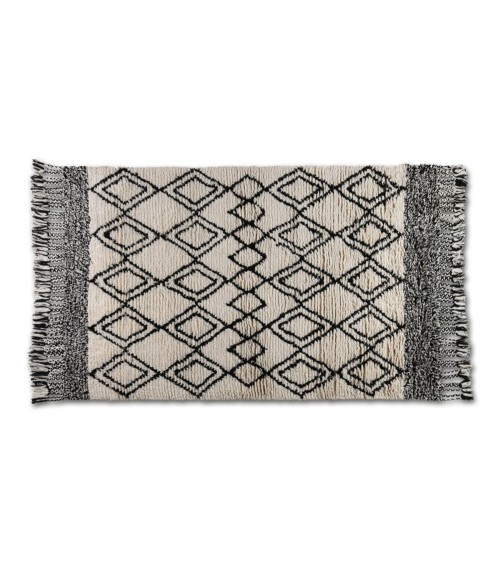 Tapis berbère en laine noir et blanc à franges 200 x 300 cm