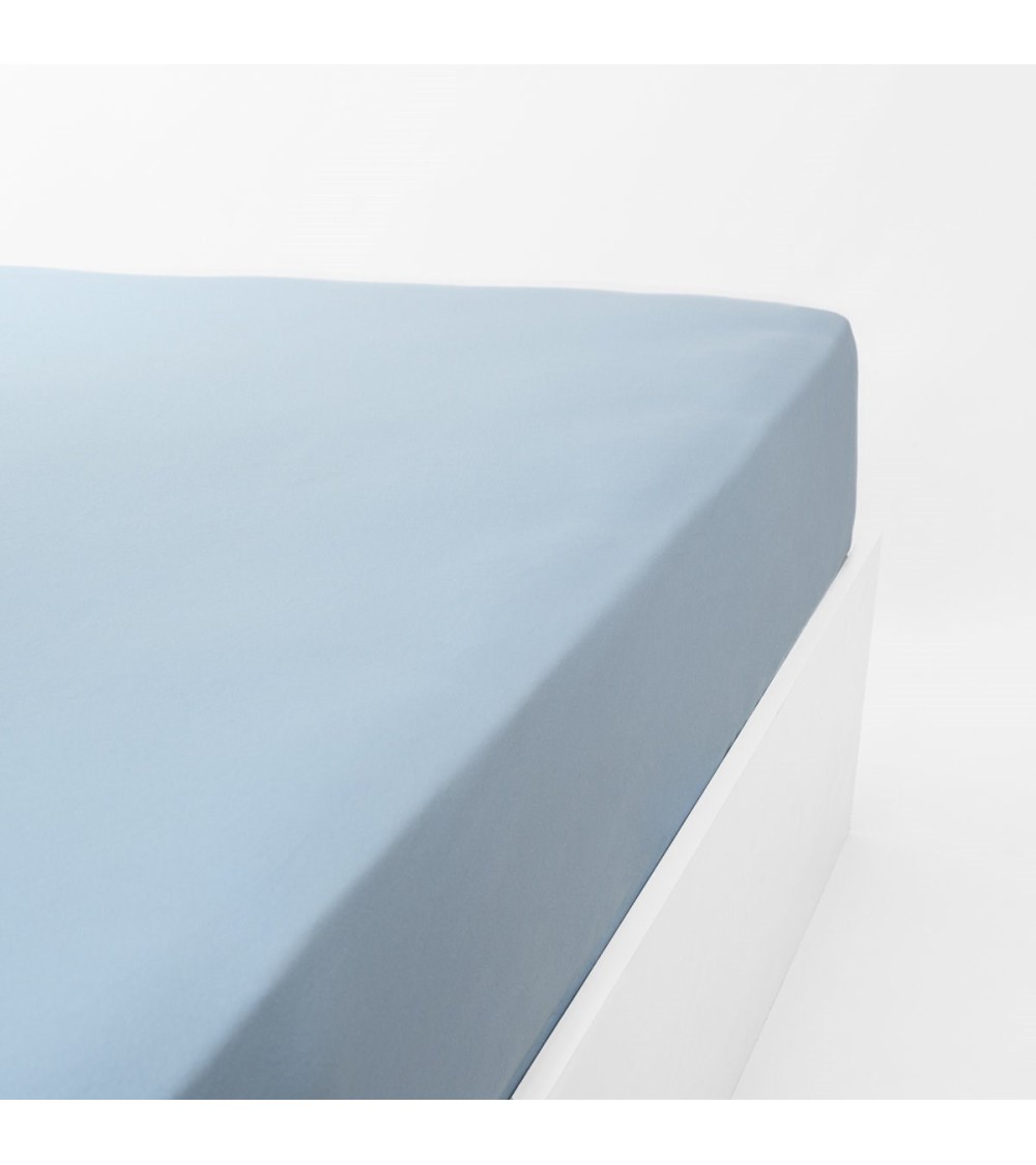 Drap housse jersey extensible en coton bleu clair 80x190 cm