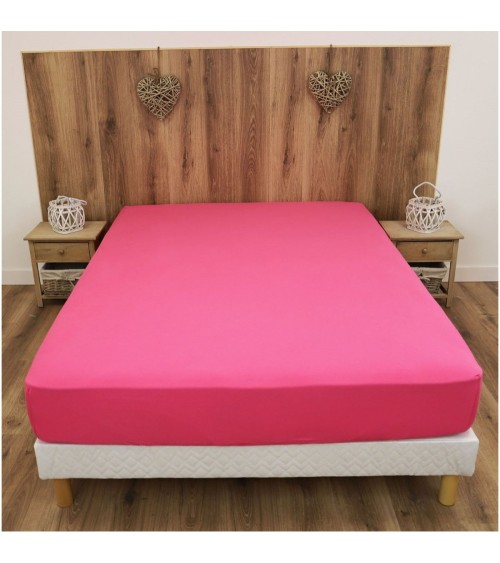 Drap housse jersey extensible en coton rose fuschia 180x200 cm