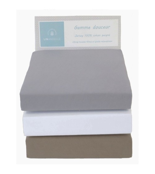 Drap housse double matelas 100% coton jersey extensible pour lit articulé éléctrique ou non, tête et pieds relevables.Caractéristiques du drap housse PAPILLON :Le drap housse est double car il s'agit d'un seul drap housse dont les deux parties sont cousues au milieu. Il est souvent appelé drap housse papillon.Très facile à enfile grâce au coton extensible en jersey, avec de grands bonnets de 28cm enveloppant largement votre matelas pour un matelas jusqu'à 25cm d'épaisseur. Ce coton est particulièrement doux, nous avons choisi de les fabriquer à partir d'un coton longues fibres, qui ne peluchera pas, et restera bien serré dans le temps, malgré les lavages.Coloris blanc grand teint, lavable en machine à 60C.Composition détaillée : 100% coton jersey extensible Marque Linandelle, référence Douceur, qualité identique à la gamme de drap housse jersey extensible pour lits simples. Fabriqué en U.E, en stocks toute l'année.« En savoir plus :  Ce produit labéllisé STANDARD 100 by OEKO-TEX® - certificat n° CQ 1102/4 IFTH suit un processus de fabrication certifié et contrôlé, respectueux de votre peau.  Le STANDARD 100 by OEKO-TEX® est le premier label qui répond aux besoins des consommateurs en matière décologie humaine. Il garantit labsence, dans les articles certifiés de substances nocives ou pouvant présenter un risque pour la santé»