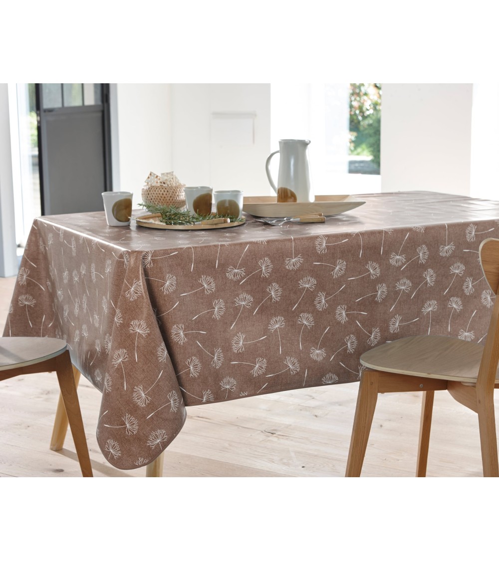 Changez de déco avec MUZIKO - Nappe rectangulaire marron taupe 138x160, une nappe en toile cirée revisitée sur un design de charme. Cette nappe imprimée apportera du peps dans le coin repas et mettra en valeur votre espace de convivialité tout en assurant protection à la table par sa composition 92% PVC 8% polypropylène.