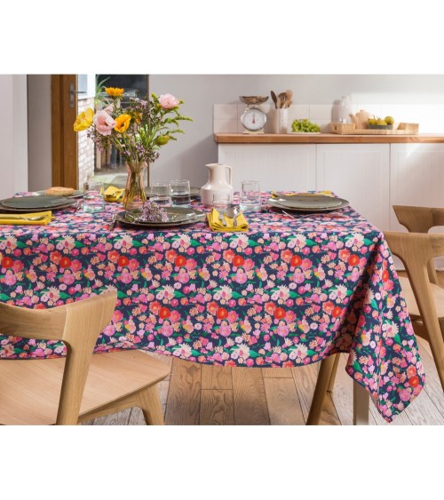 Craquez pour FLORAL - Nappe en multicolore 160x300, une nappe enduite Nydel® au charme printanier ! Cette nappe à fleurs est conçue avec une enduction acrylique sur du coton pour éviter l'imprégnation des taches courantes, parfaite pour les tablées quotidiennes ! Cette nappe enduite en pur coton, est adaptée pour les lavages occasionnels à 40°.