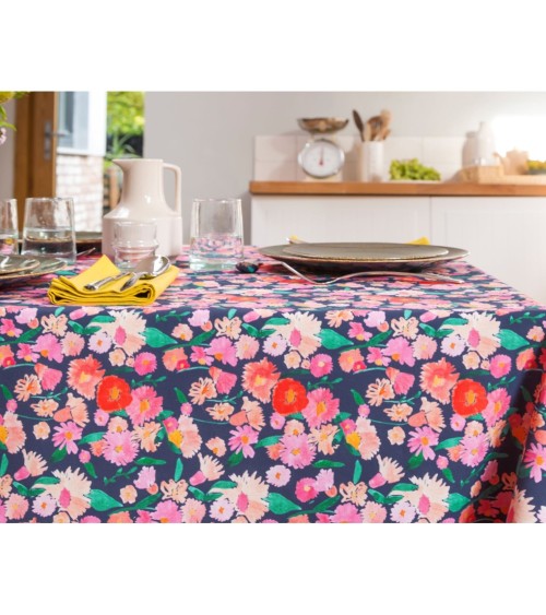 Craquez pour FLORAL - Nappe en multicolore 160x250, une nappe enduite Nydel® au charme printanier ! Cette nappe à fleurs est conçue avec une enduction acrylique sur du coton pour éviter l'imprégnation des taches courantes, parfaite pour les tablées quotidiennes ! Cette nappe enduite en pur coton, est adaptée pour les lavages occasionnels à 40°.