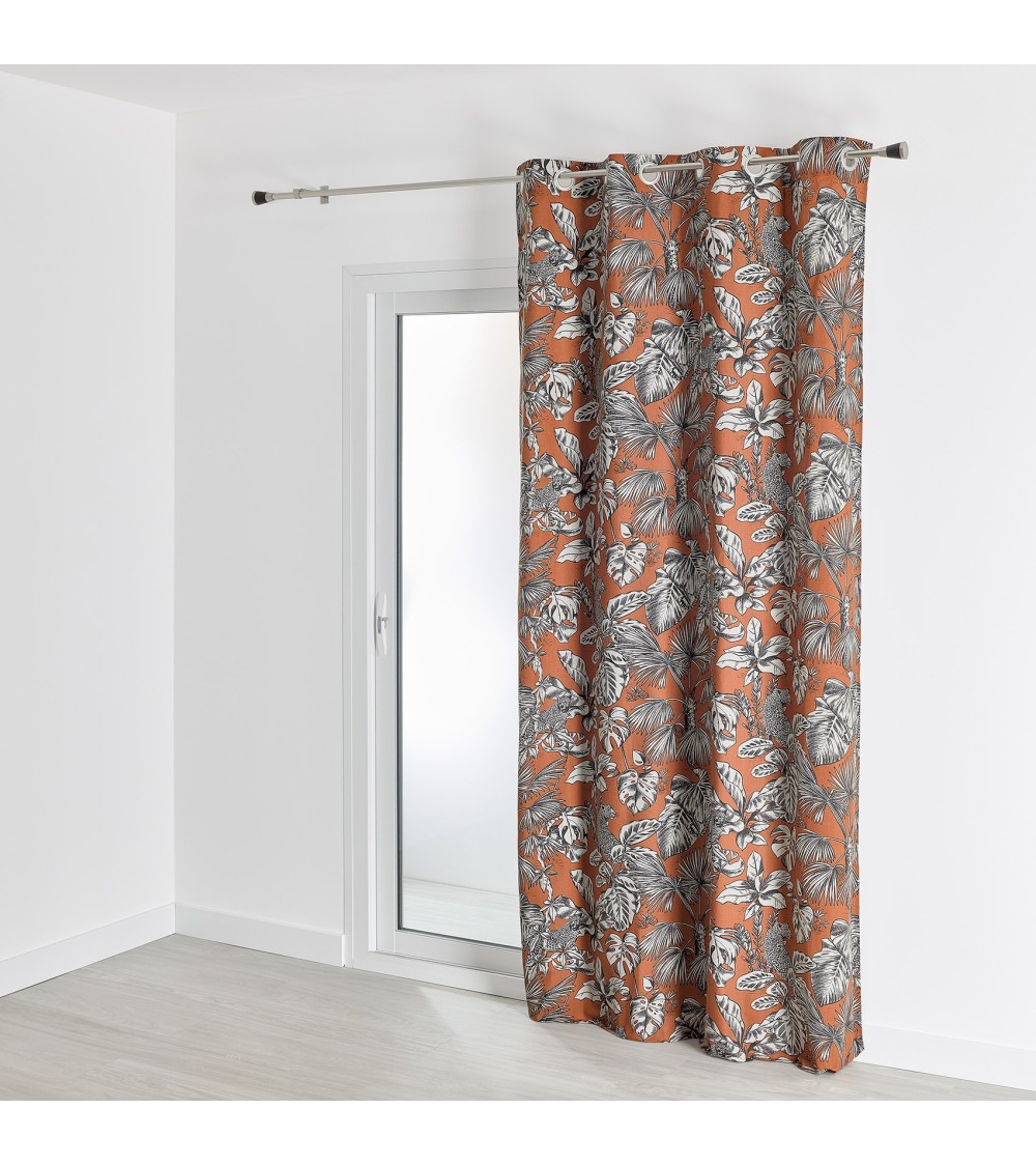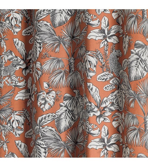 Ce rideau d'ameublement en toile imprimée apportera de la couleur à vos fenêtres. . Idéal pour créer une décoration unique et exotique grâce à ses motifs au style ''jungle''. Des coloris dans la tendance qui donneront un coup d'éclat à votre pièce. Lavage en machine à 30°. Nous vous proposons également le tissu au mètre assorti pour cérer vos propres coussins, nappes... . Caractéristiques:. Dimension : 140 x 260 cm. Finition : 8 oeillets ronds en coloris argent avec une bande de renfort. Composition : toile imprimée en 100% coton. Coloris : brun, turquoise, bleu paon, bambou et jaune. Finitions : bas et côtés ourlés. . Vendu à l'unité. Prêt à poser