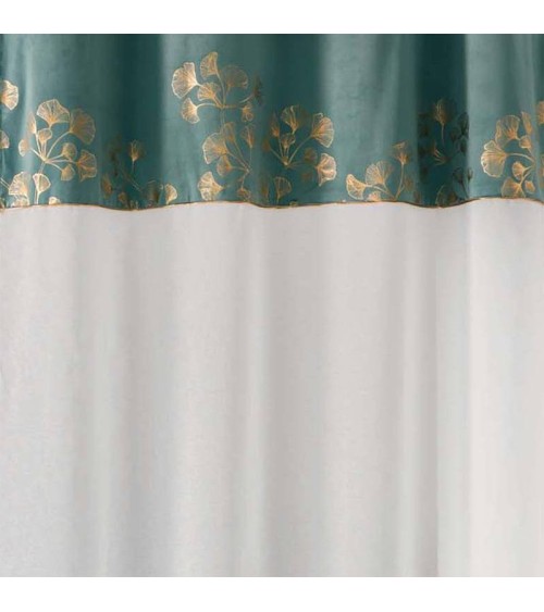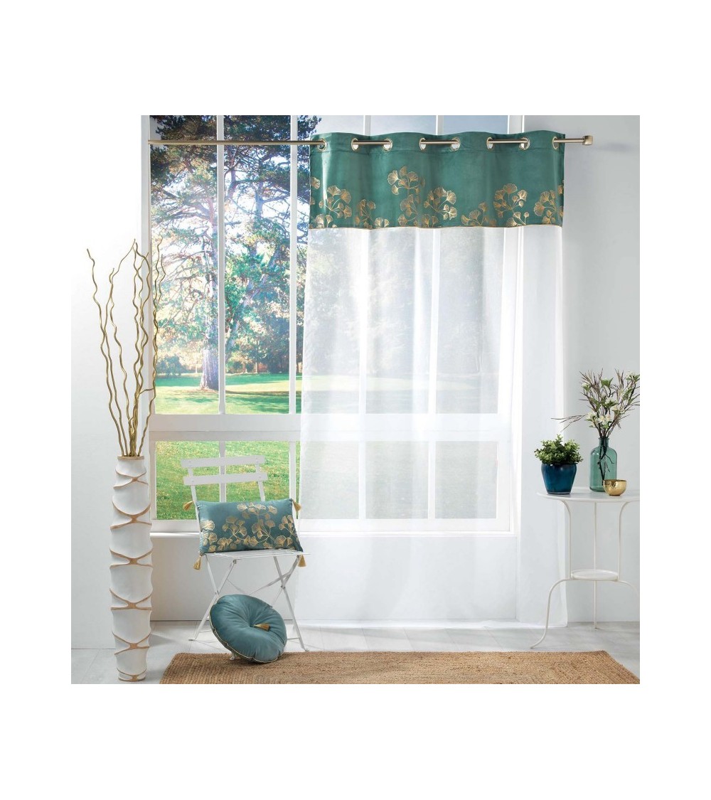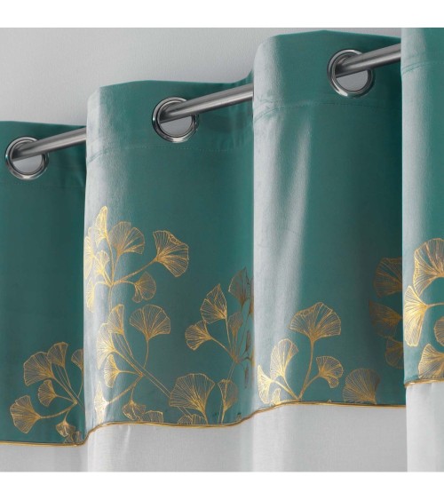 Voilage effet velours et imprimé or polyester pétrole 240x140cm