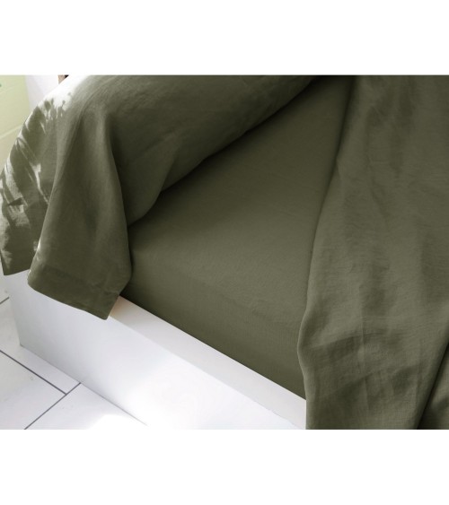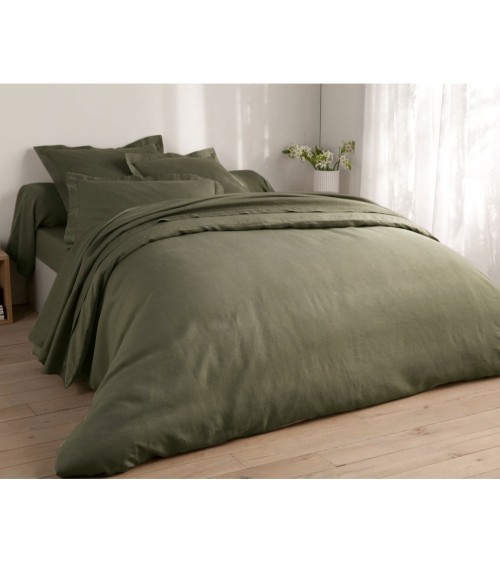 Housse de couette 240x260 verte en lin lavé
