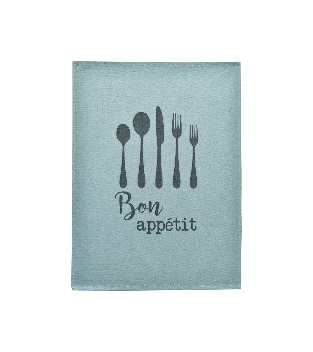 Laissez-vous tenter par BON APPETIT - Lot de 3 torchons en coton bleu grisé 50x70 un lot de torchons pour une cuisine pratique ! Des torchons en pur coton qui conférent un joli style à la cuisine : du linge de maison, tel des accessoires déco ! Ces torchons en pur coton 230 g/m² à la finition gansée sont lavables à 40°. Ce lot de 3 torchons jacquard ''bon appétit'' de dimensions 50 x 70 cm sera votre allié des tâches ménagères !