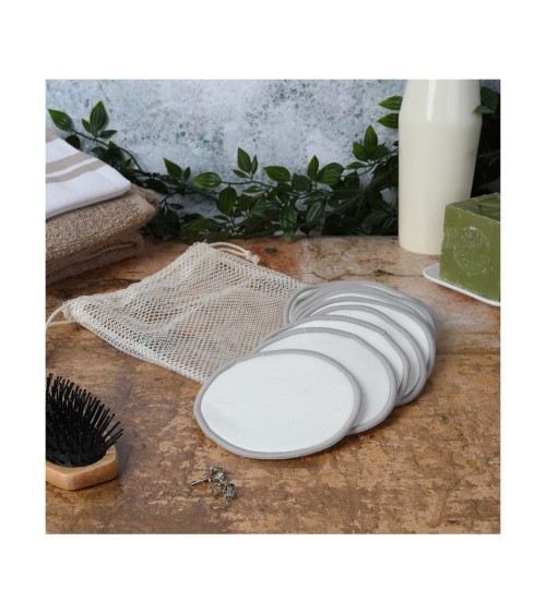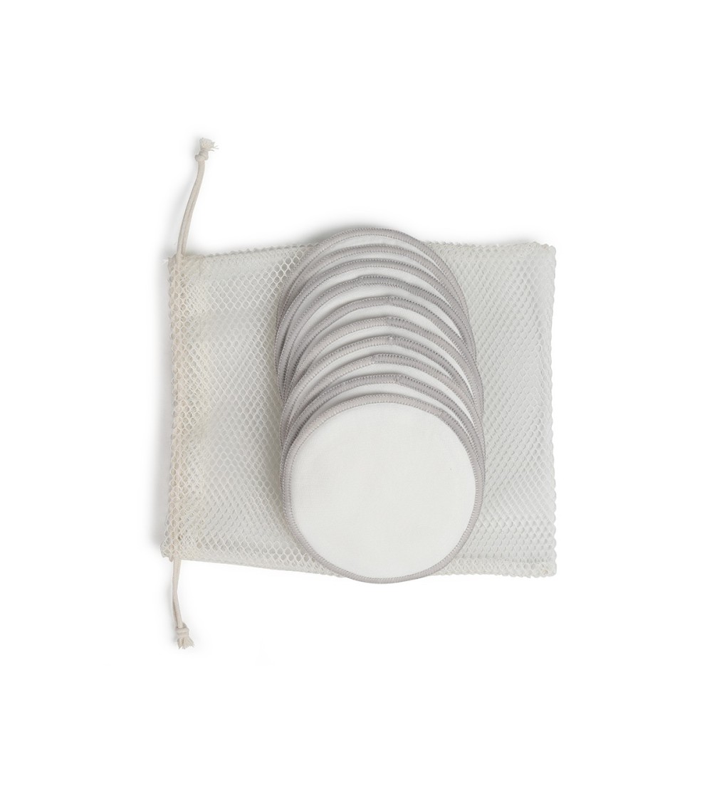 10 cotons démaquillants réutilisablesPochette de rangement/lavageDiamètre des cotons : 11 cmAdapté aux adultes et aux enfantsÉcologique et économique70% fibre de bambou/30% coton
