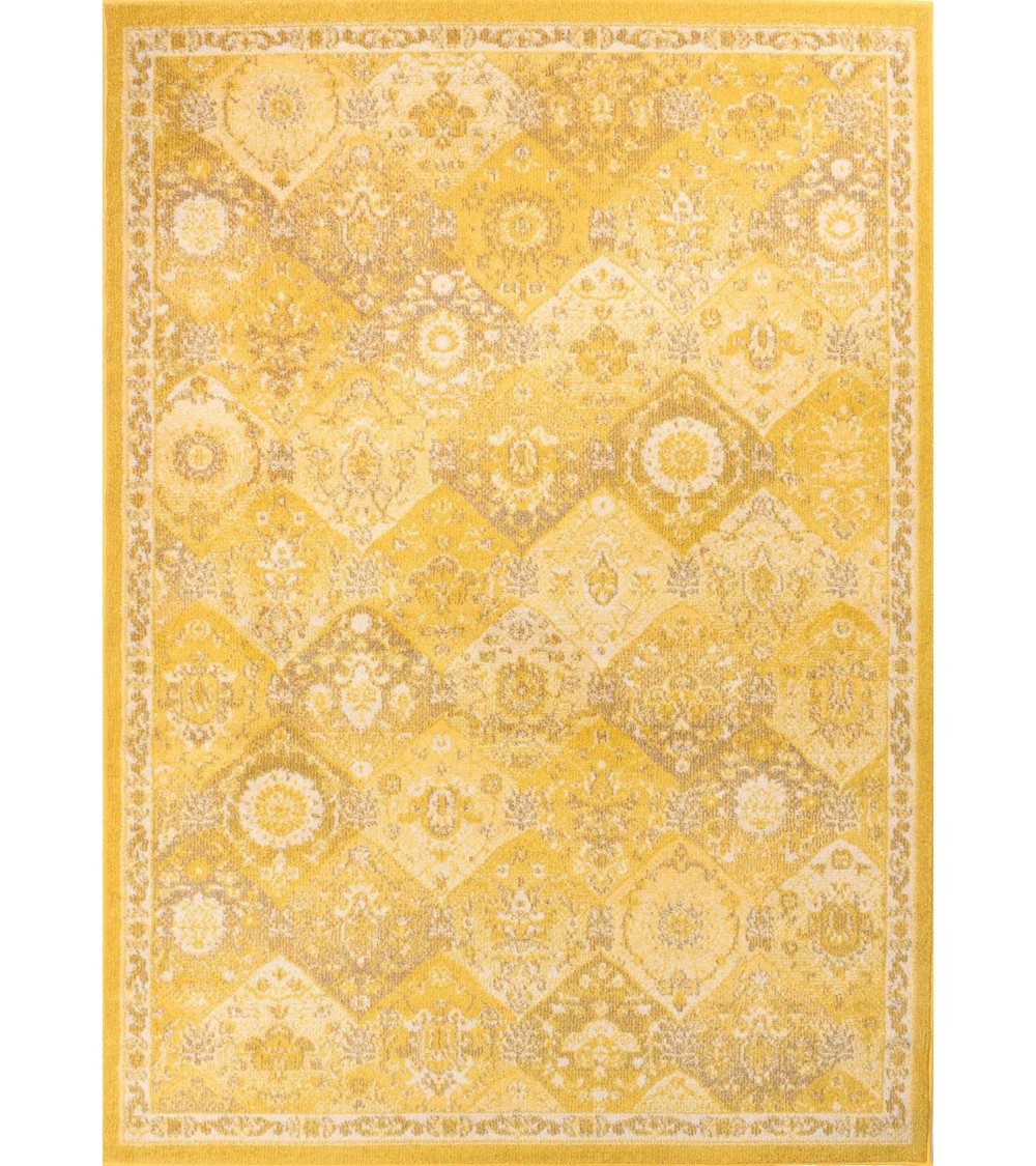 Tapis salon vintage en laine artificielle jaune 200X290