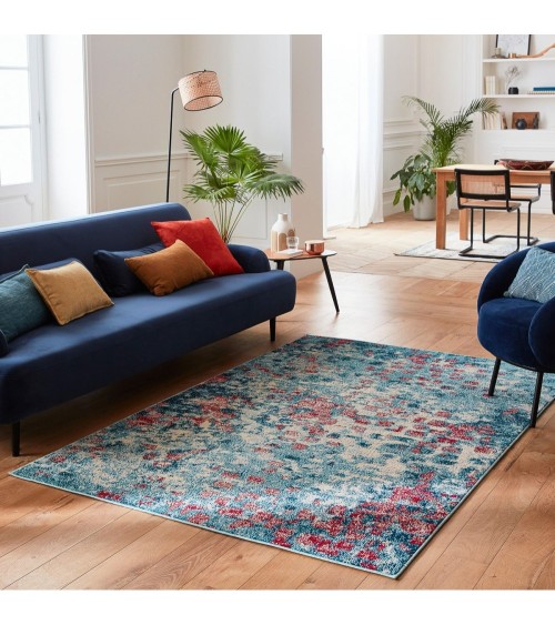 Tapis salon vintage en laine artificielle bleu canard 120X170