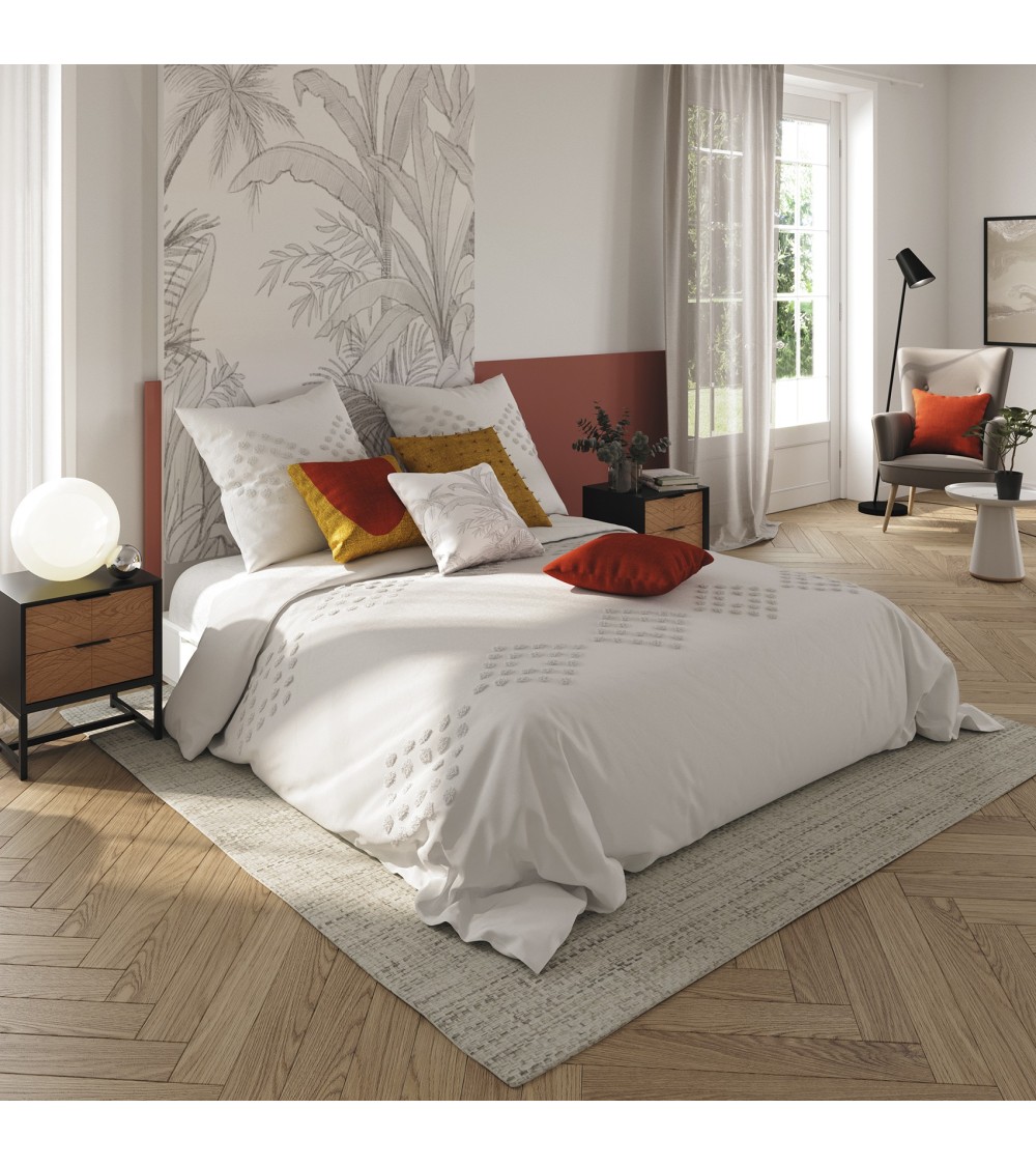 L'aspect blanchi et froissé de cette parure de lit en coton lavé pour 2 personnes apportera un peu de douceur dans votre chambre. . Les motifs frangés en relief de la housse de couette de 240 x 220 cm vous offrira de la douceur. 2 taies d'oreiller de 65 x 65 cm accompagnent cette housse. . Pour un maximum de confort, la housse de couette se ferme par des boutons invisibles. Non nocive pour la santé et soucieuse de l'environnement, celle-ci bénéficie du Label Oeko-Tex. Facile d'entretien (pas de repassage). Lavable en machine à 40°C. . Caractéristiques : . Dimensions : Housse : 240 x 220 cm (2 personnes) Taie : 65 x 65 cm. Coloris : Bleu, ocre, ivoire, gris. Composition : 100% coton. . Vendue à l'unité (housse + taies).