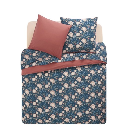 Le modèle Fairy Blossom réinterprète à sa façon le floral exubérant façon William Morris, pour une chambre tendance et raffinée. Au recto, vous trouverez ces sublimes motifs floraux travaillés sur un fond bleu marine, et au verso un uni bois de rose.