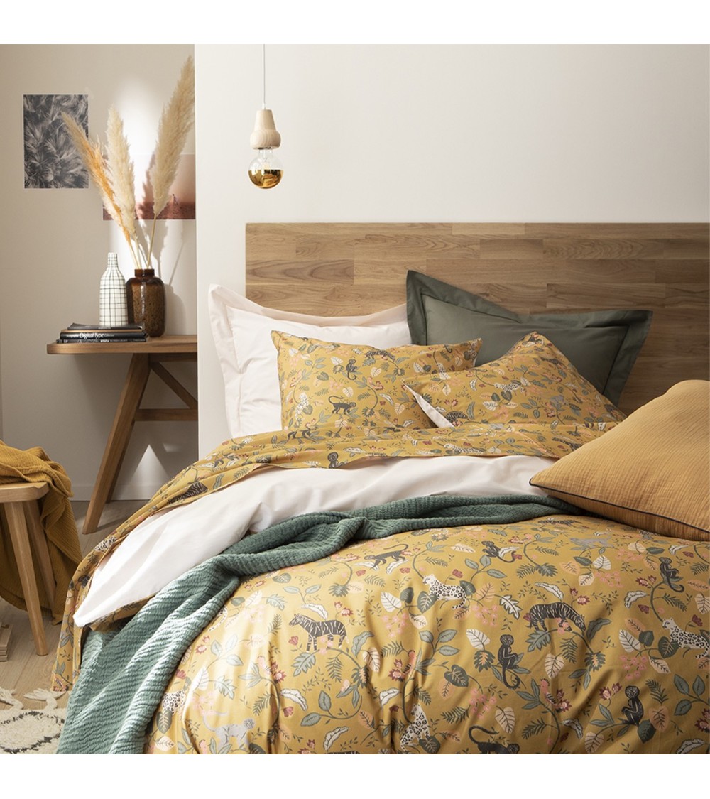 Le modèle Bestiaire vous transportera dans un safari poétique. Vous observerez des motifs imprimés de faune exotique tranquille et de flore luxuriante , sur un fond sahari qui vous fera voyager sous de chaudes latitudes. Avec BESTIAIRE, vous offrirez des nuits magiques, pleines d'aventure, pour toute la famille. Il plaira aussi bien à des adultes qu'à des enfants avec ses couleurs tendances et raffinées.