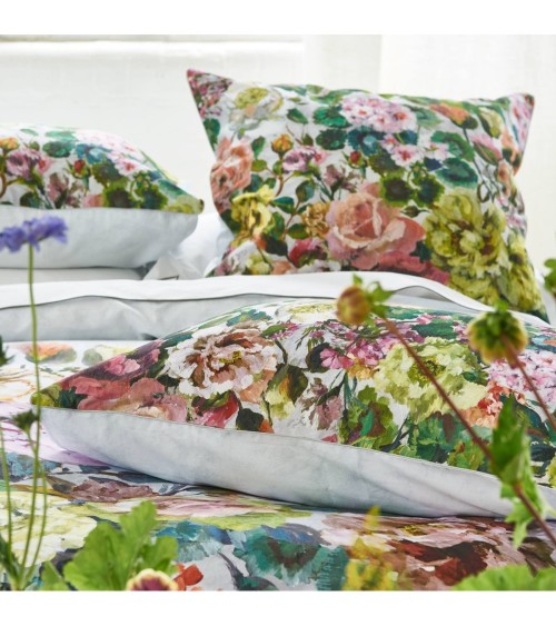 Le modèle Grandiflora représente une peinture aquarelle d'une célébration de fleurs printanières grandioses inspirées des jardins anglais. Le revers reprend le contre fond de la face principale, taies doreiller finies avec un élégant passepoil.