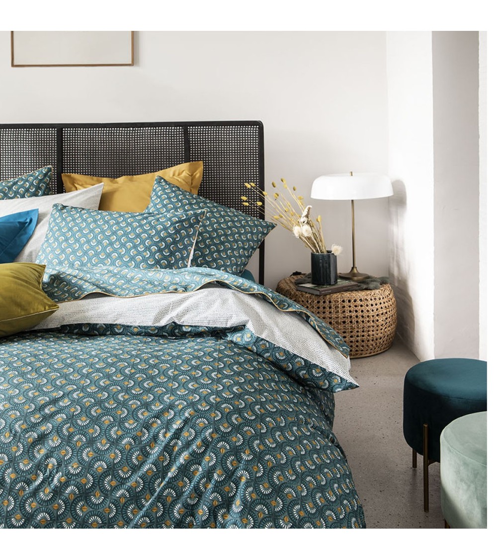 Housse de couette imprimée en percale de coton émeraude 140x200