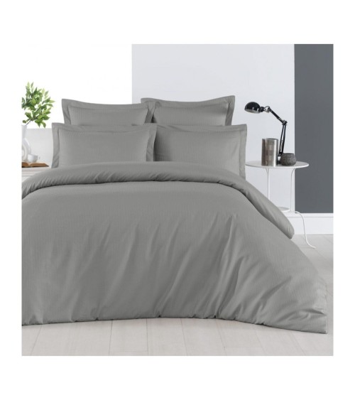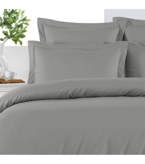 Housse de couette rayée réversible en satin Gris Acier 240x220 cm