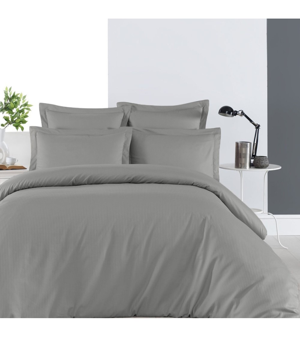 Housse de couette rayée réversible en satin Gris Acier 260x240 cm