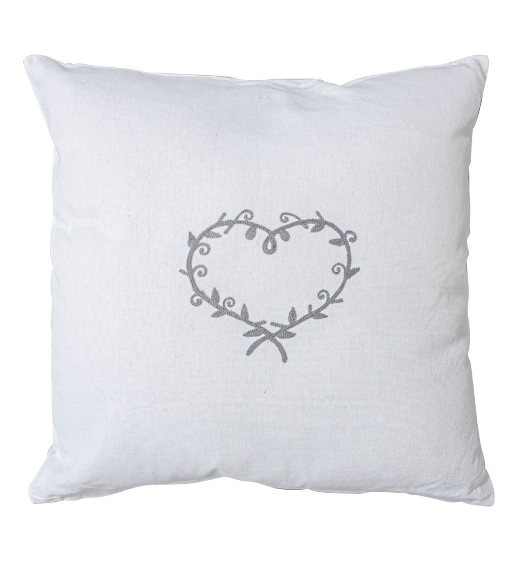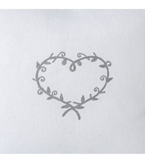 Coussin déhoussable au cœur brodé coton blanc brodé gris 40 x 40