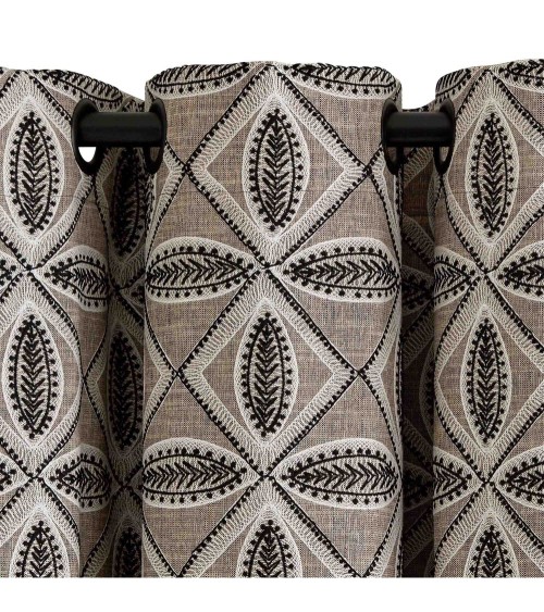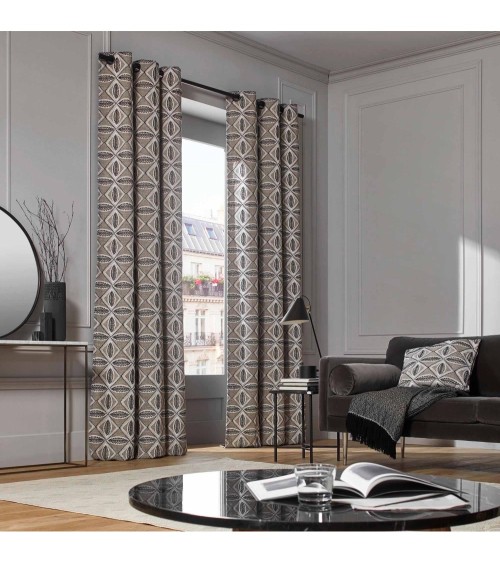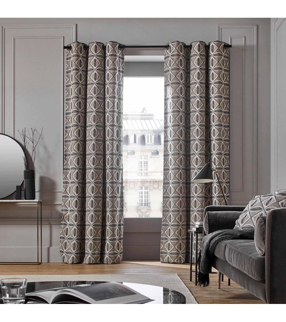 Cap vers le sud, avec comme inspiration les magnifiques céramiques que Picasso a réalisées dans latelier « Madoura » de Suzanne Ramié ... Ce rideau doublé à oeillets noirs est brodé de fils noirs et ivoire qui dessinent un motif de fleurs stylisées avec la finesse et la complexité dune dentelle revisitée. Moderne, chaleureux et fort de toute la richesse de ses textures, il nous invite au voyage. Un motif entre tradition et modernité. Des coloris intemporels qui se mêlent à toutes les décorations. La qualité de ses finitions pour un tombé irréprochable.