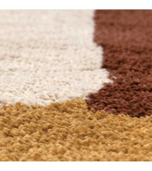 Le tapis Tahina de la marque Vivaraise est un tapis 67% de Polypropylène 28% de Jute et 5% de Polyester à mèches aspect laine. Décoré de formes irrégulières aux courbes douces et teint de coloris chauds, ce tapis est la touche contemporaine qui illumine votre intérieur. En plus d'ajouter de l'élégance et du volume à votre pièce, il sublimera votre intérieur avec douceur ! Grâce à sa matière, ce tapis est résistant aux taches. Ultra moelleux, profitez de sa douceur au quotidien.